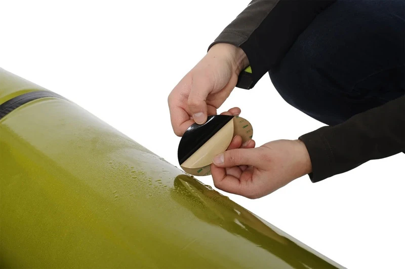 Das Patch kann auch im Regen und unter Wasser angebracht werden. Anwendbar auf Oberflächen aus Polyurethan (alle Packrafts), PVC, Neopren sowie unbeschichtetem Nylongewebe unter 420denier (z.B. zur Reparatur von Spritzdecken und Trockenanzügen). Ideal unterwegs für die schnelle Reparatur von Booten ohne die Notwendigkeit der Säuberung/Trocknung.