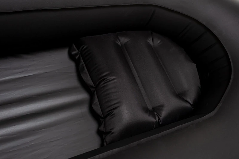 symmetrischer Rumpf, horizontal umlaufende Schlauchverbindung, 3-teiliger Aufbau, Beschichtung innenliegend, 5 Gepäck/Halteschlaufen, eine Sitzbefestigung, Hauptventil mit Rückschlag