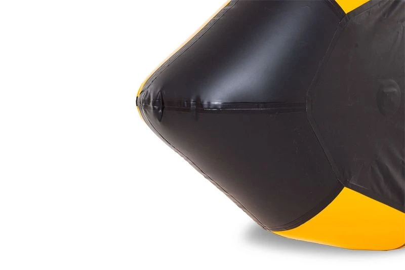 symmetrischer Rumpf, voluminöser Bug, großvolumiges Heck, flacher Boden, 5 befestigte Haltepunkte (3 vorn, 2 hinten), Hauptventil mit Rückschlag, Sitz-Riemen, verstärktes Bug- und Heck-Segment mit Panel aus Bodenmaterial