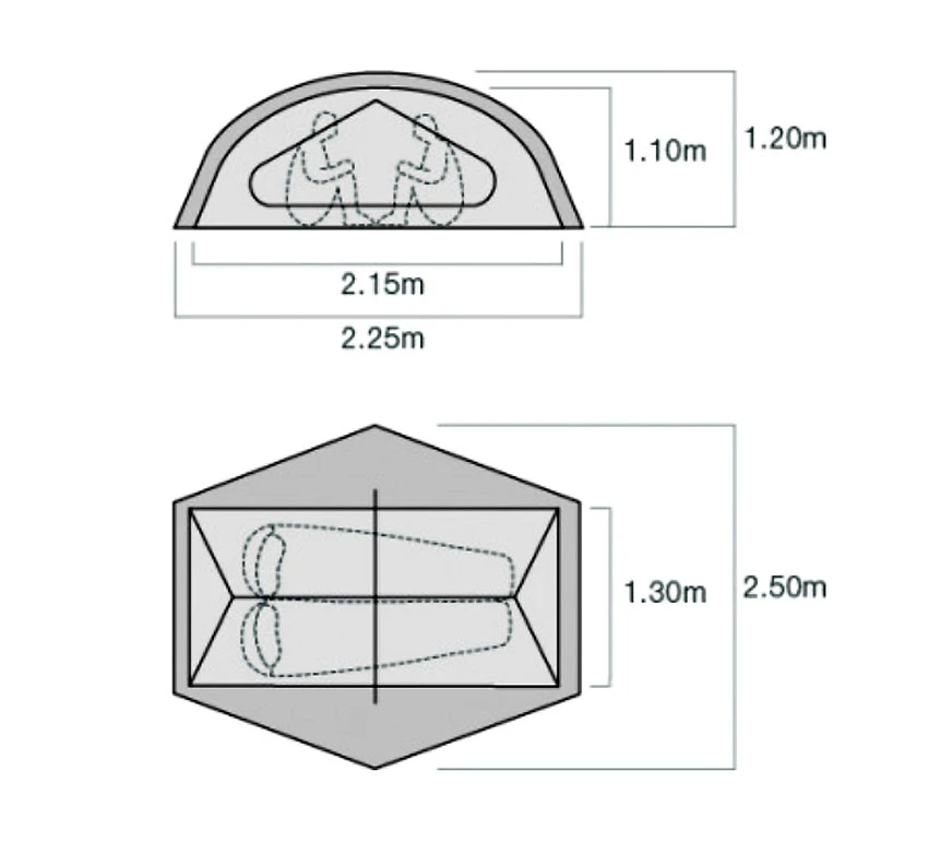 Apsidenfläche: 1.4 m² - Gewicht auf Tour 2.1 kg