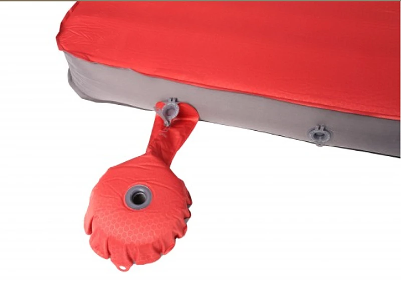 - mit kleiner Pumpe im Lieferumfang, um die Matte bei Bedarf härter oder auch nur schneller aufzupumpen, als es der sich dehnende Schaum tut – sehen Sie das Detailbild