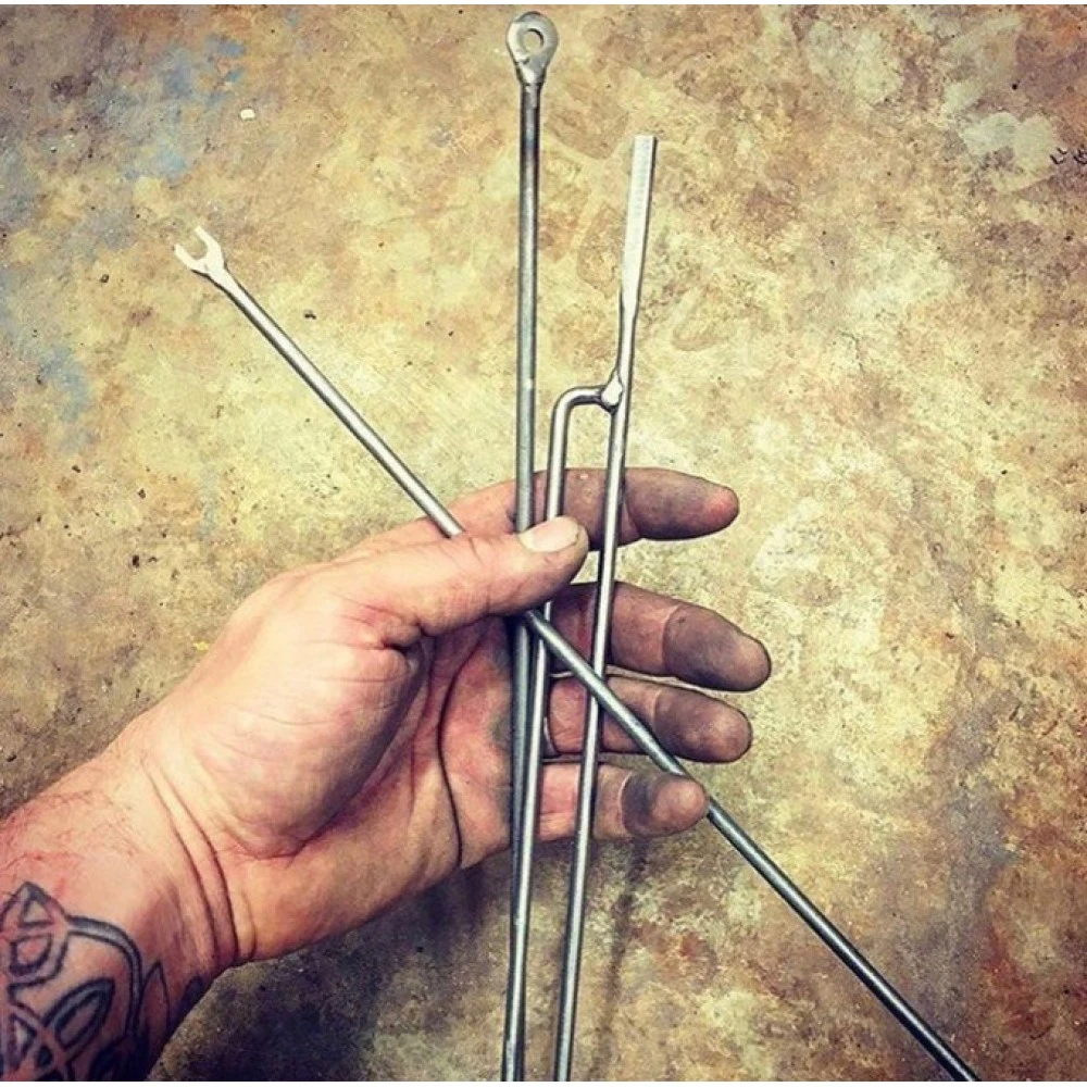 - 6-teilig: 2 Aufstellstürzen, 1 Spieß, 2 Turn keys, 1 „Etui“
