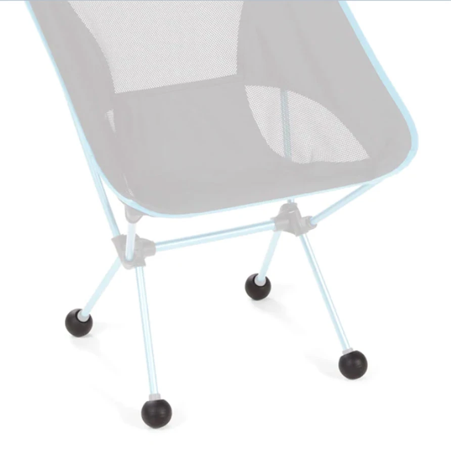 Diese grossen Bälle werden auf die Endstopfen der passenden Helinox-Stühle aufgesteckt und verhindern das Einsinken zuverlässig. OK, bei Treibsand…;-) oder Schlamm kommen sie auch an die Grenzen.