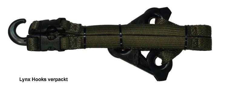 - Lieferumfang: 2 Stück Lynx Hooks Spanngurte in der jeweiligen Farbe Camouflage Grün