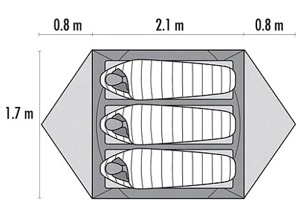 Sehr gute Entlüftung durch variable Apsiden-RV. IZ komplett aus Moskitonetz – optimal in gemäßigten Zonen, weniger gut für kalt-stürmische Gegenden.
