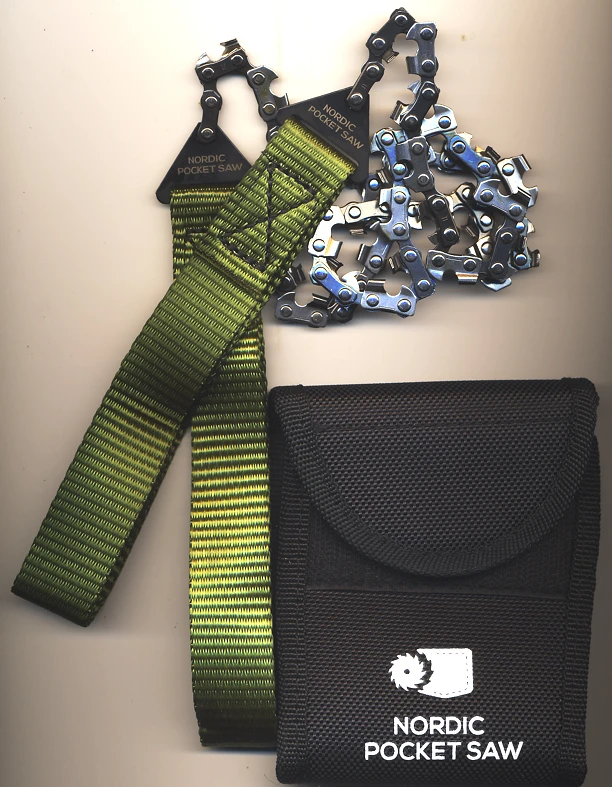 Die Nordic Pocket Saw ist besonders: besonders leicht, hat ein besonders kleines Packmaß – die Sägeblätter stammen von speziellen Kettensägen für den Astschnitt, haben daher kleinere Kettenglieder, die sich in engerem Radius zusammenbiegen lassen.