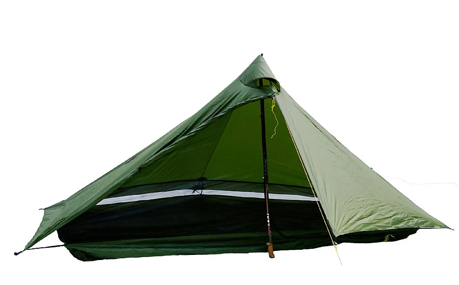 Ein sehr leichtes einwandiges Tarpzelt für eine Person. Braucht zum Aufbau eine Aufstellstange von 124.5 cm Länge – das kann auch eine Trekkingstock sein.