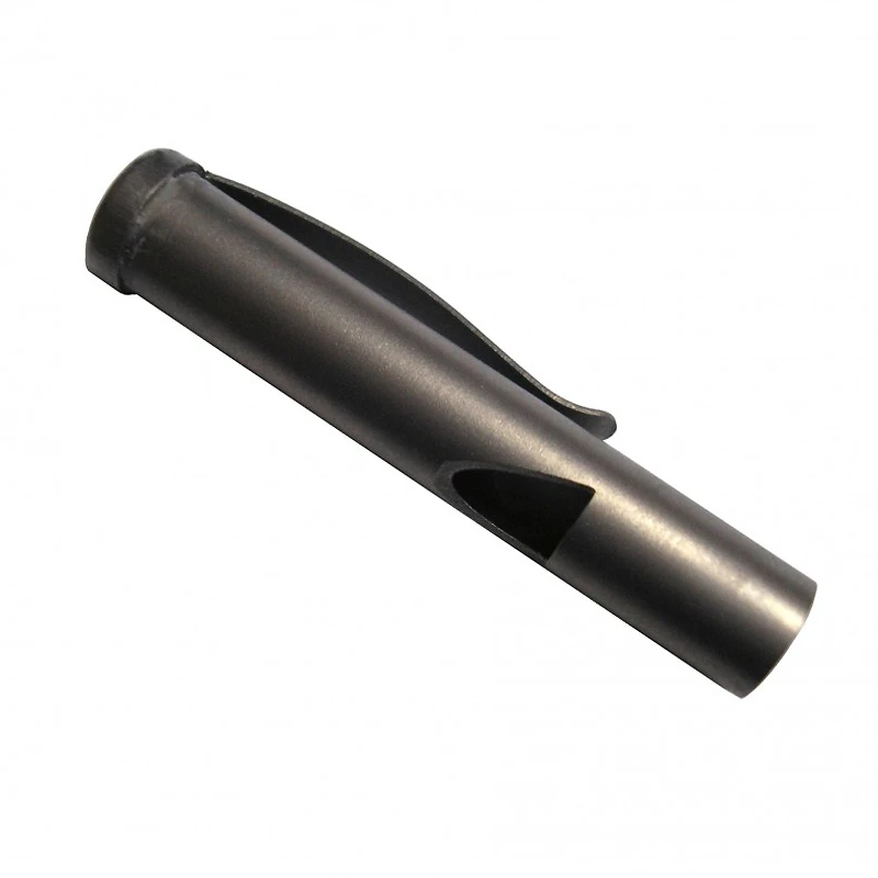 Eine ultraleichte Notfall-Pfeife aus dem megastabilen Material Titanium. Enorm laut, funktioniert auch unter widrigen Bedingungen, ohne Kugel. Version mit Clip zum Befestigen an Gurtbändern o.ä.