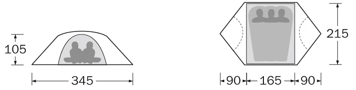 - Es hat die klassische, freitragende Konstruktion mit dem Gestängeverlauf am Innenzelt